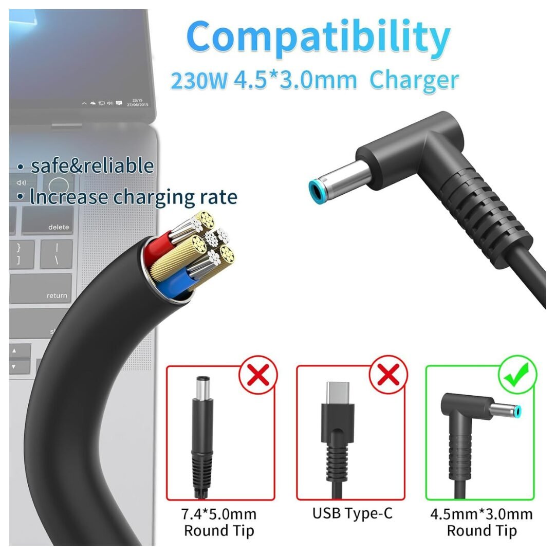 โก High Power Capacity: 230W charger delivers strong and stable power for HP laptops and gaming models.