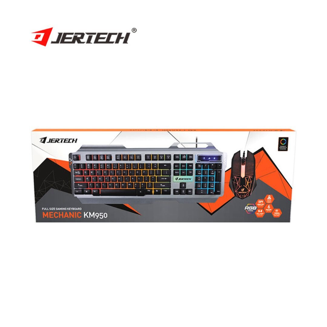 🎮 Jertech KM950 RGB Gaming Keyboard + Mouse Combo – Full-size keyboard with LED lighting and gaming mouse. Perfect budget gaming setup in Qatar.