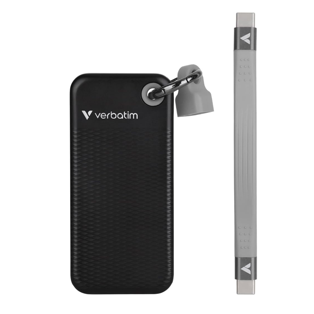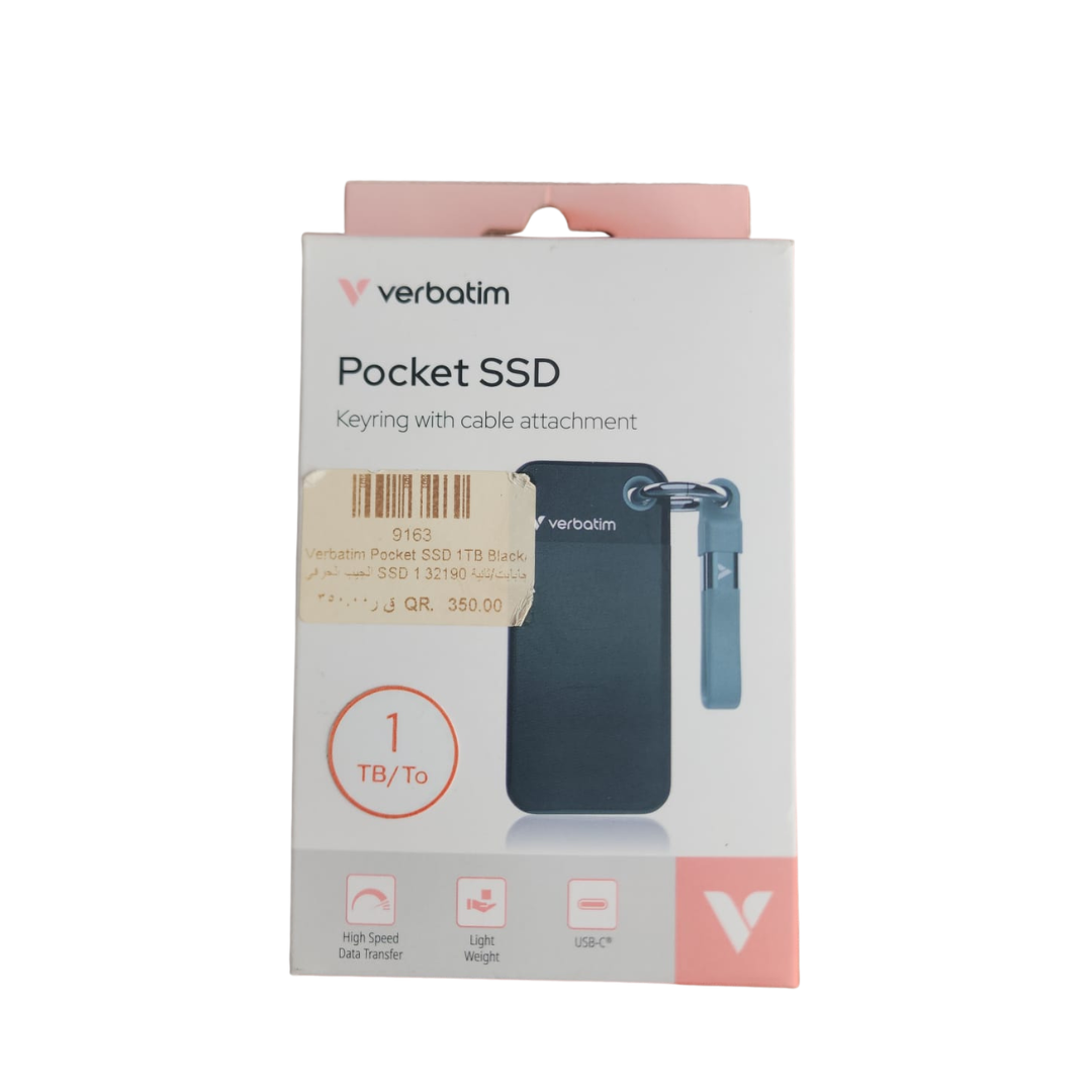 Verbatim 1TB Pocket SSD is a compact, lightweight, and high-speed portable storage device with USB-C connectivity, perfect for daily use in Qatar.